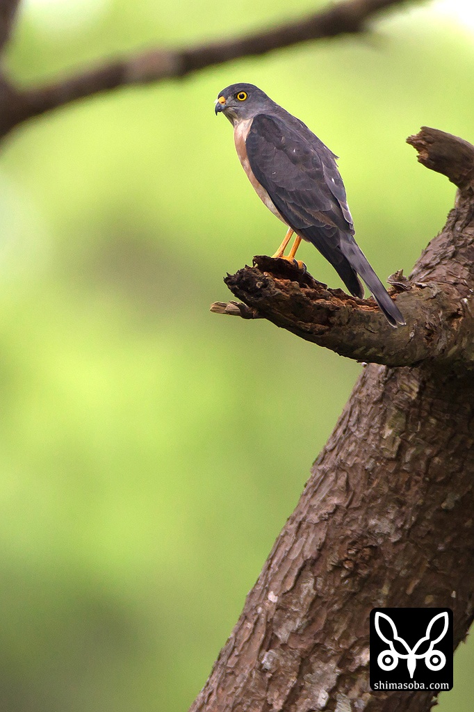 アカハラダカのメスです。人を恐れない個体で車からでて三脚を立てても逃げず、この後、セミを捕まえて茂みの中で食っていました。アカハラダカとわかってれば、もっとたくさん撮ったのにー!!