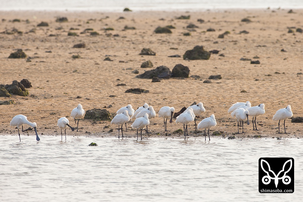 クロツラヘラサギがまとまって入ってきました。奈良からバードウオッチングに来ている方に教えていただきました。^^ その方が言われるには2日まえには43羽の群れが石垣島からさらに南下していったそうです。すごい!!