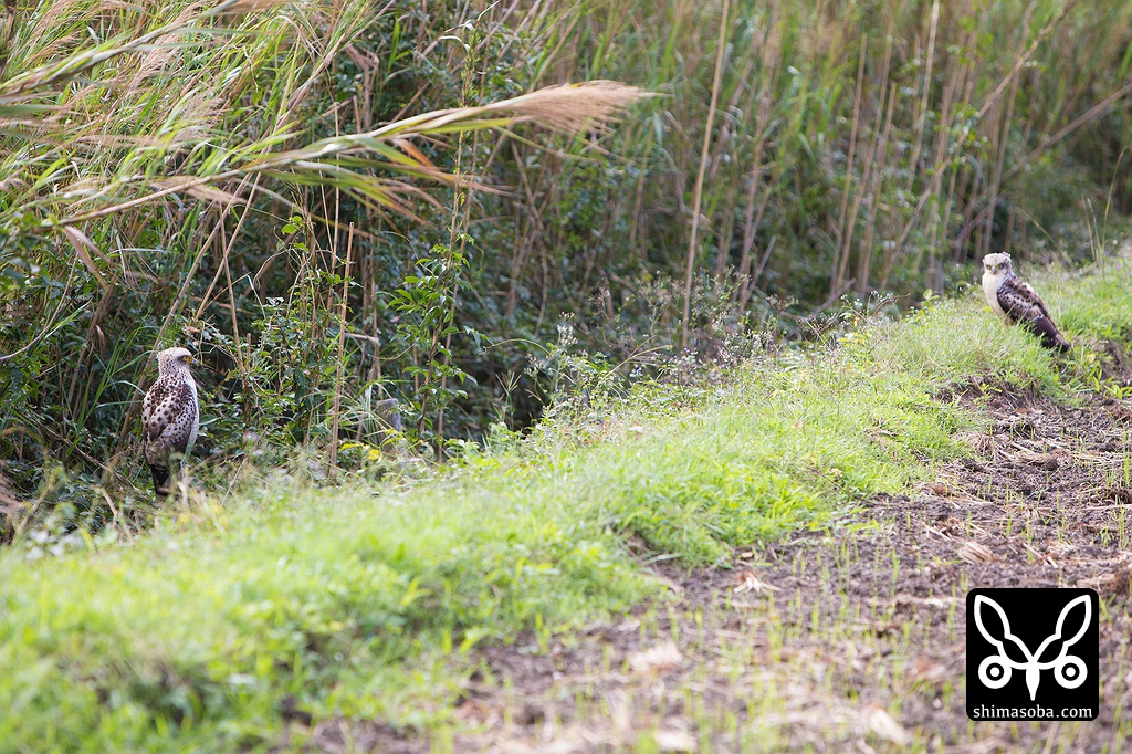 きょうは、カンムリワシの幼鳥が3羽観察できました。撮影地の名蔵の水田地帯は、幼鳥が数羽で入れ替わり立ち替わり。多い時で4羽いたそうです。