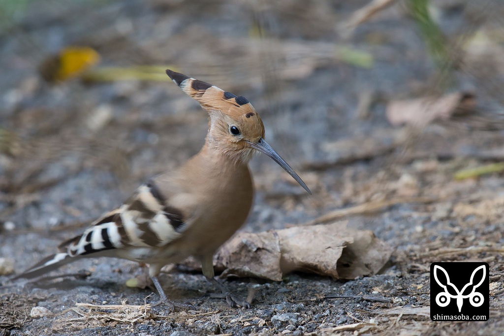 珍しく暗めの林道にいました。上のヤツガシラから200メートルぐらいしか離れていないので同じ個体かと思いましたが、拡大して確認してみると換羽の状態から判断して別の個体でした。^^;