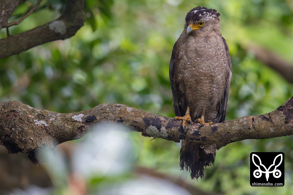 アカショウビンがよく止まる枝にカンムリワシが陣取っていました。