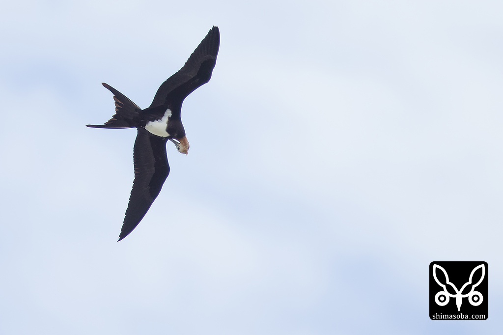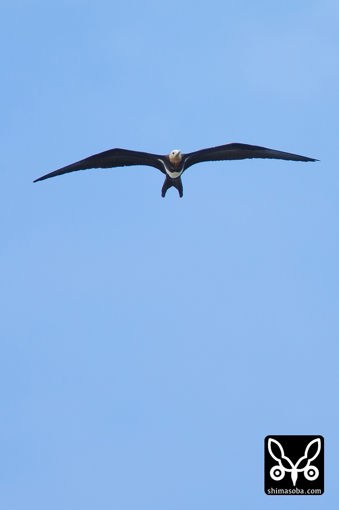 上昇気流に乗りながら悠々とこちらにやってきたコグンカンドリ。ちょっと不気味で不吉な予感さえします…。^^;