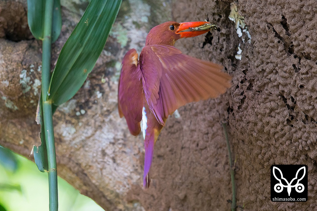 餌運びに忙しいアカショウビンの親鳥。20分に1度ぐらいの頻度で持ってきます。