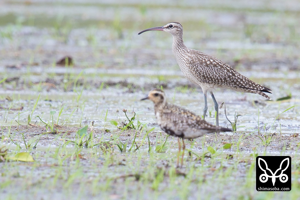潮が引くまで、チュウシャクシギも田んぼで休憩です。