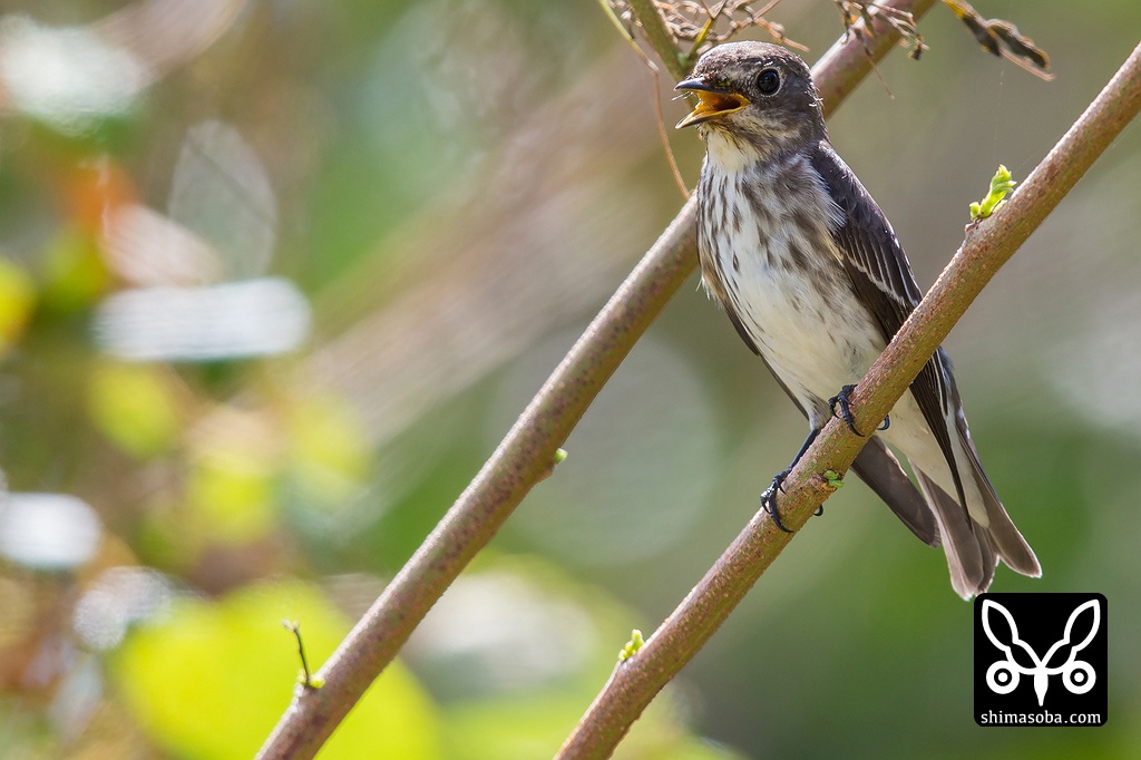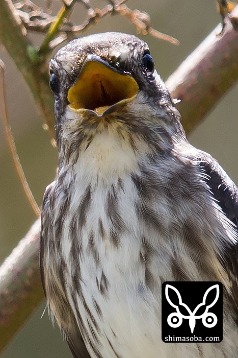 今日はとても暑い一日でエゾビタキも口を開けています。