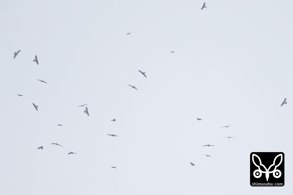 昨日、一昨日と悪天候でサシバの渡りを見に行けませんでした。今日は、雲が空一面に広がり、青空は全く望めませんでしたが、サシバは2000羽強が飛びました。