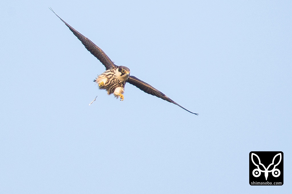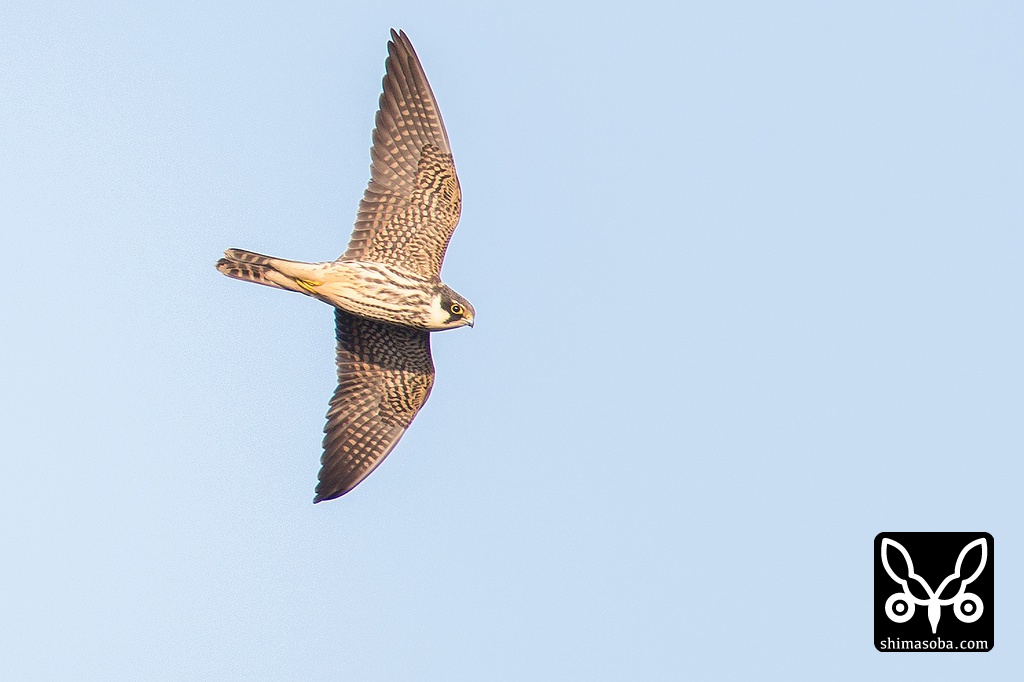 夕日を浴びて、悠々と飛ぶチゴハヤブサ。