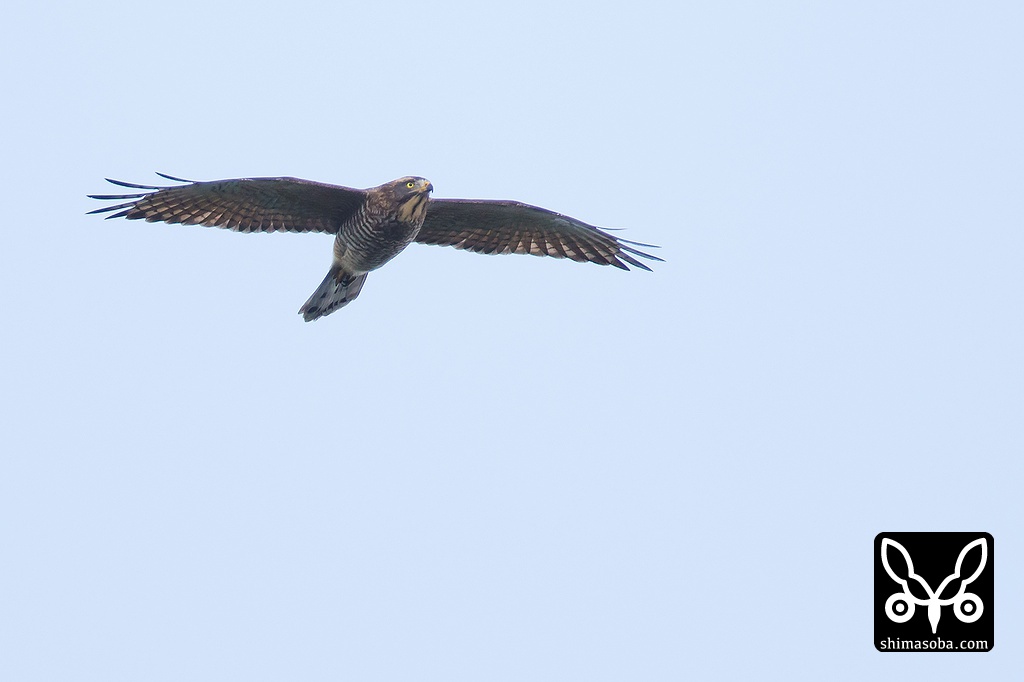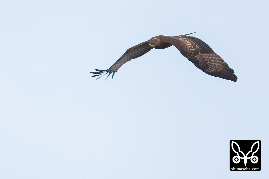 2時間ほど時間が空いたので、仕事中にバンナの渡り鳥観察所でサシバの渡りを見てきました。少し時間が早かったので、100羽ほどしか確認できませんでしたが、ハチクマを1羽見ることができました。 先日のハチクマ と比べてみると初列風切の破れ具合と尾羽の模様が違うので別個体のようです。