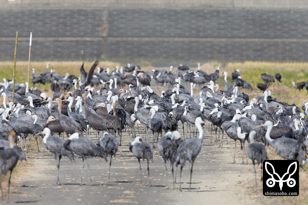 休遊地にはどさっとナベヅルがたむろしています。休遊地の周りはシートで目隠しがしてあり手厚く保護されていました。