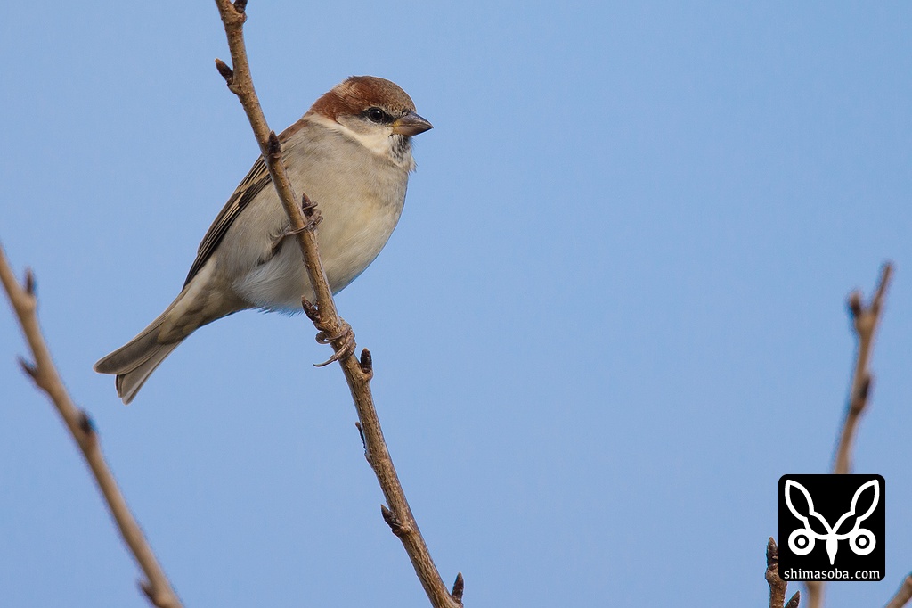 西干拓のニュウナイスズメのオス。電線にズラーッと並ぶのは全てニュウナイスズメでした。^^;