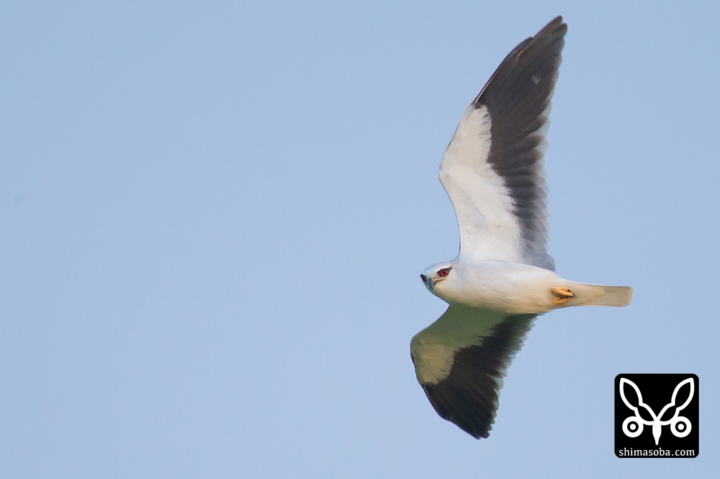 撮影終了間近にやっと薄日が差し、カタグロトビのルビーのような赤い目がはっきりと見えました!! 何度見ても美しいですね。