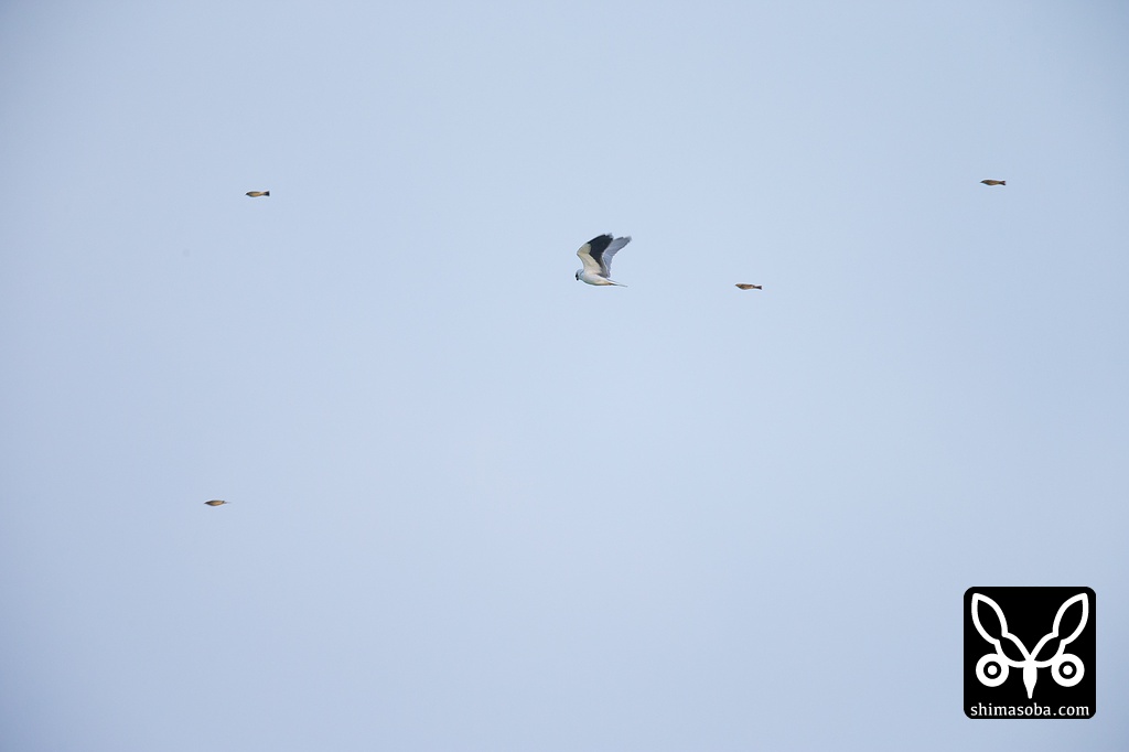 今日もカタグロトビを見に行ってきました。いつもの餌場にいつもの時間にやってきて午後6時にはねぐら入りするカタグロトビです。今日は、タヒバリと思われる小鳥にモビングされてかなり嫌がっていました。