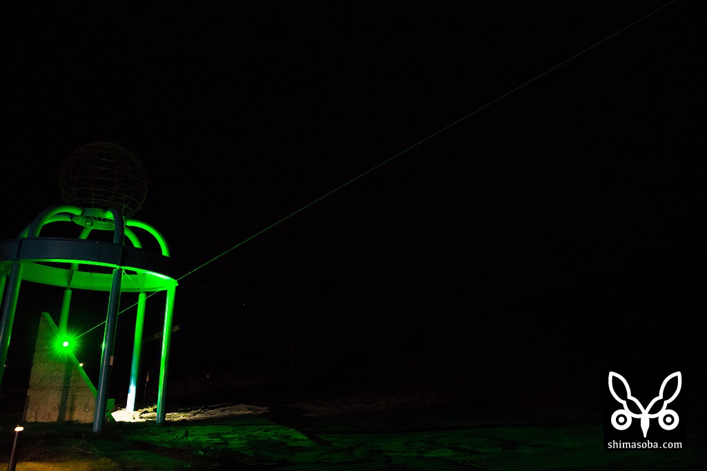 子午線モニュメントからビームが出ていて、このビームに集まる蛾を捕まえるリュウキュウアオバズクがいました。