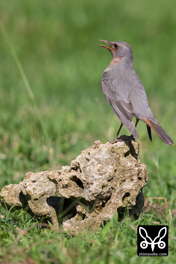初日の昼ごろ南風見の牧場を回っていたら、シロハラのようなツグミのような鳥を見つけ、双眼鏡を覗いてみるとノドグロツグミ? よく見ようとしていると軽トラックが通って飛んで行ってしまいました。ツグミの仲間は飛ばされても同じ餌場に戻ってくるので、20分ほど待つとまた現れました。双眼鏡で再度見てみるとノドアカツグミのオスで第1回冬羽でした。さて、撮影というところで今度はチョウゲンボウに飛ばされてしまいましたが、やはり弁当を車内で食っている間に戻ってきました。^^