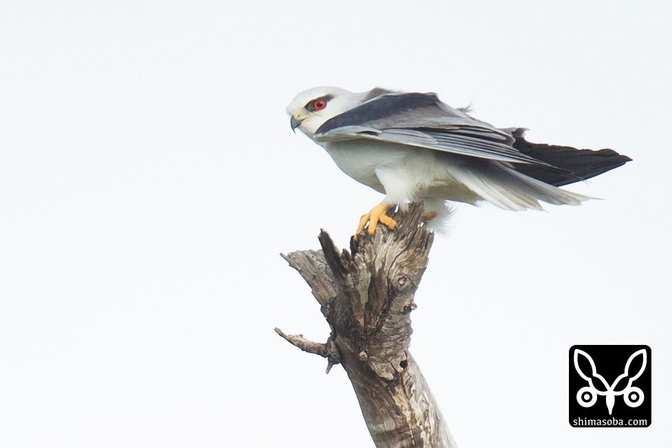 昨年の10月からのカタグロトビ。年が明けて2016年も元気にしていました。最大3羽が同じ場所にいたのですが、今日は1羽だけでした。相変わらずカラスとカタグロトビは犬猿の仲でした。