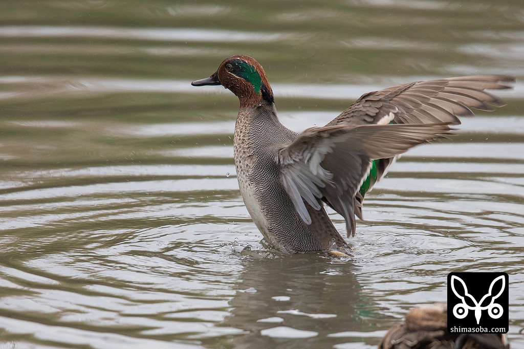 コガモもたくさんいます。ハヤブサが上空を飛んだ時は大騒ぎでした。