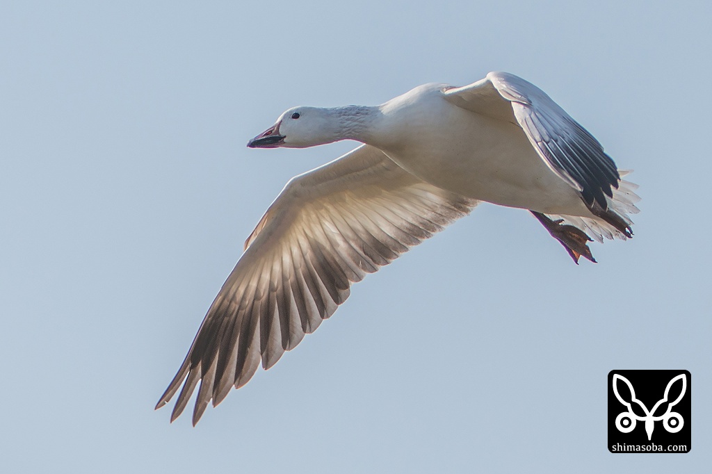 3羽のハクガンが仲良く行動していました。飛来した当初より羽が抜け換わり白くなったそうです。奥の個体はまだグレーっぽいですね。