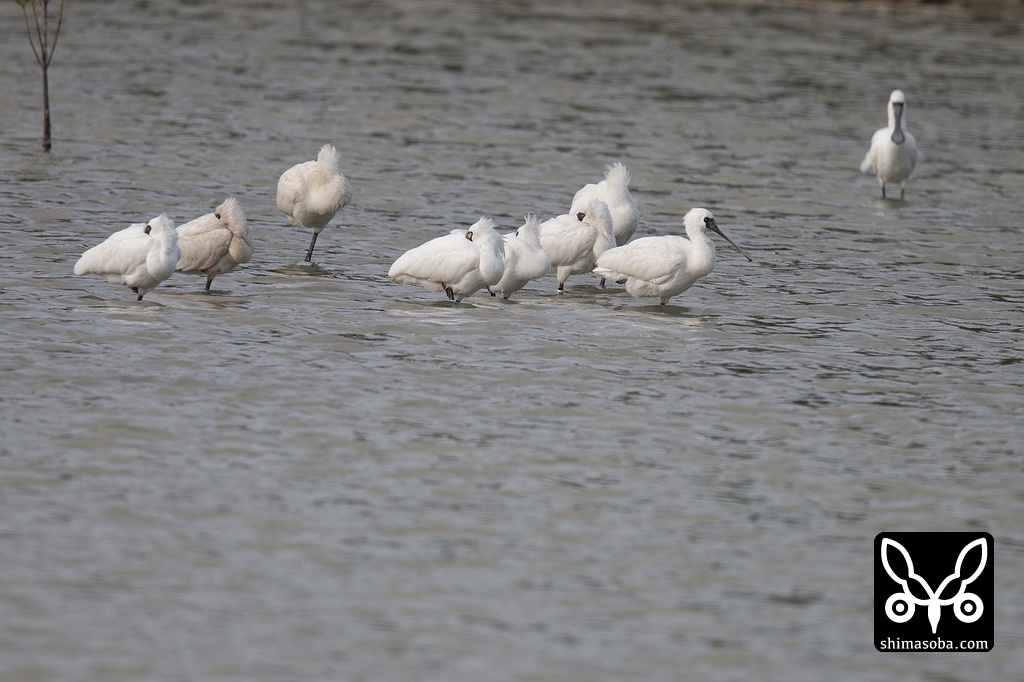豊崎干潟のヘラサギ、クロツラヘラサギ