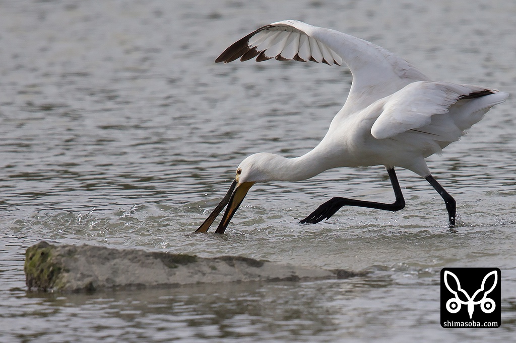 魚の群れに果敢にアタックするヘラサギ。