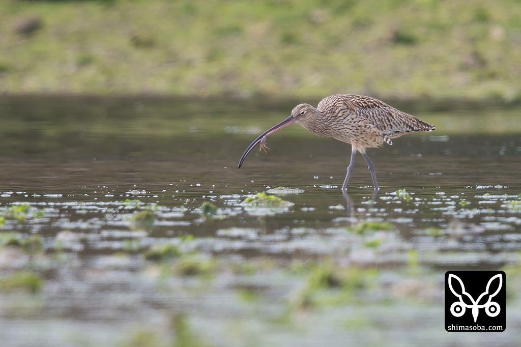 ホウロクシギは潮の引いた海岸でカニをたくさん捕まえていました。