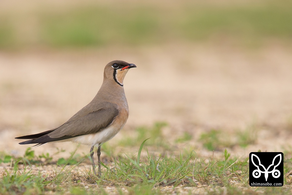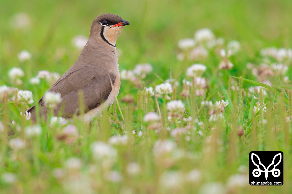 クローバーが所々にある草地でツバメチドリは休んでいました。