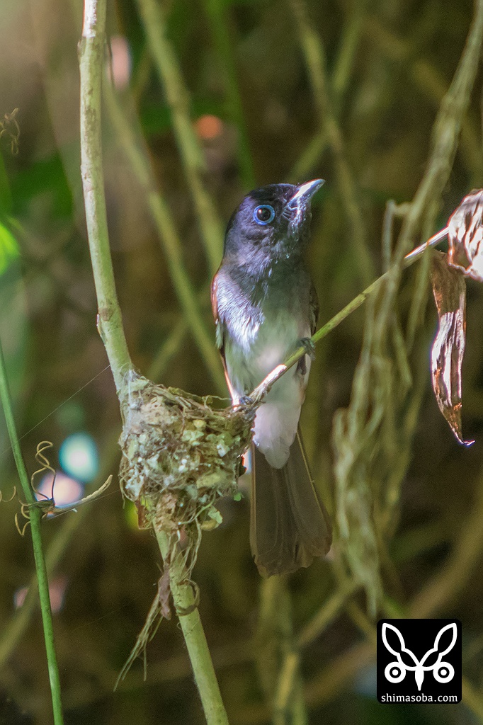 リュウキュウサンコウチョウのメスが巣材を運んできました。あと2〜3日で完成です。