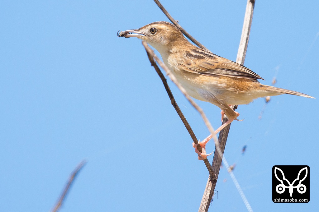 ハエトリグモの仲間を捕まえてきたセッカ親鳥。