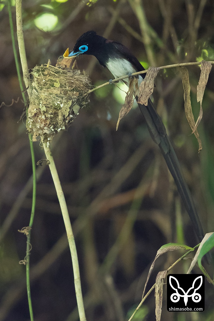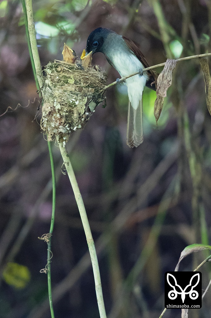 メスのサンコウチョウが持ってくる獲物はガばかりでした。