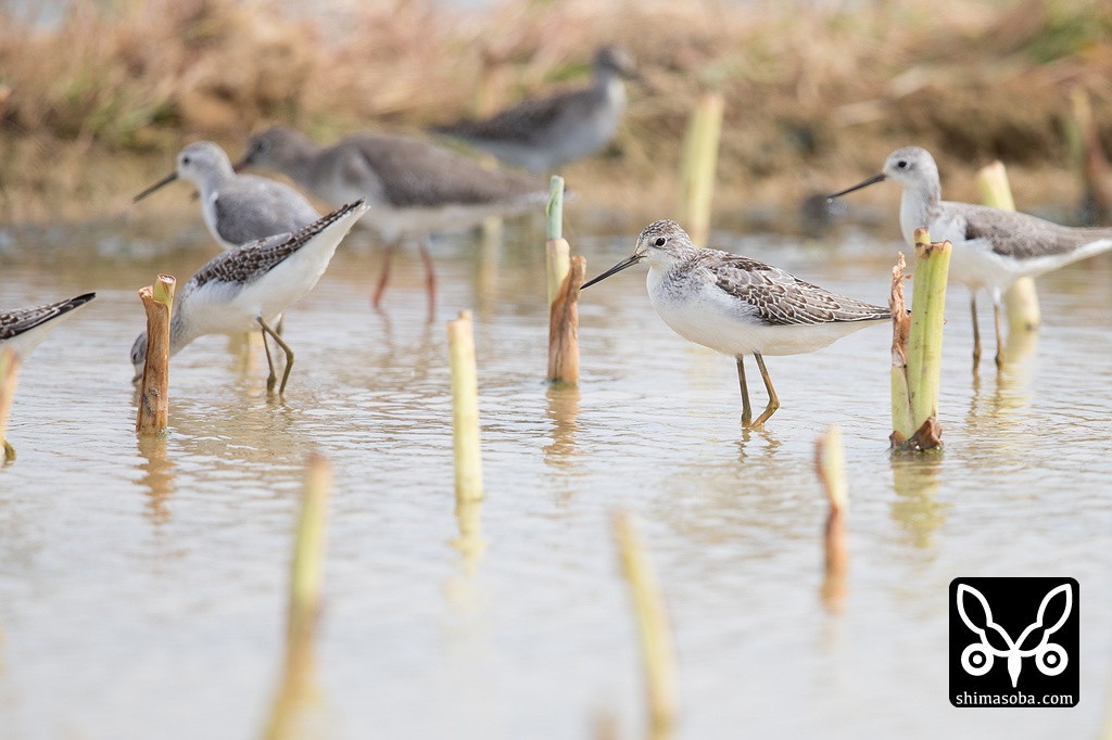 コアオアシシギ幼羽から成鳥冬羽までいろいろ。