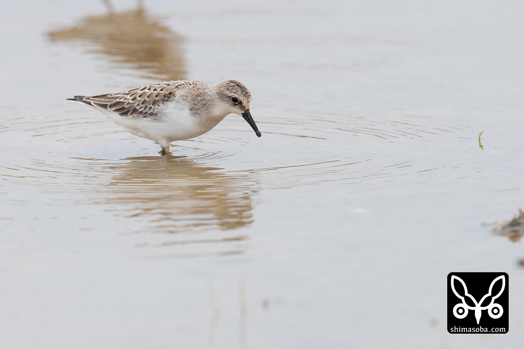 トウネン幼鳥。田んぼでヒバリシギと行動を共にしていました。