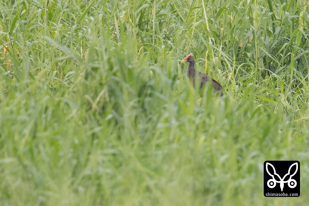 土砂降りもなんとか止み、初撮影が叶ったツルクイナのオス。かっこいいクイナです。