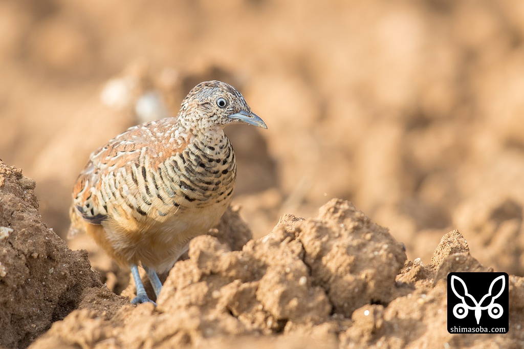 ミフウズラのメス。後ろにオスを従えていました。みなさんご存知の通り、ミフウズラは一妻多夫制です。