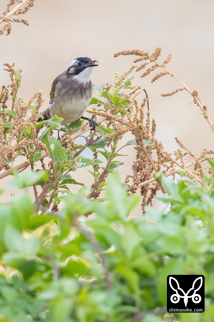 最近は、シロガシラも群れで活動することが多くなってきました。十数羽の群れで草の種子を食っていました。