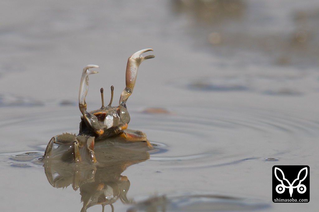 野鳥たちの餌となるヒメヤマトオサガニ。こんなことしてるから簡単に捕まるのでは?^^;