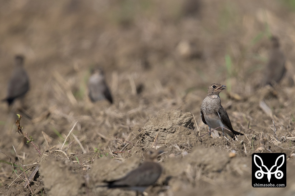 宮城島の畑にツバメチドリが50羽ほどひとまとまりに。一様に疲れた様子だったのでどこかから渡ってきたばかりなのでしょうか。
