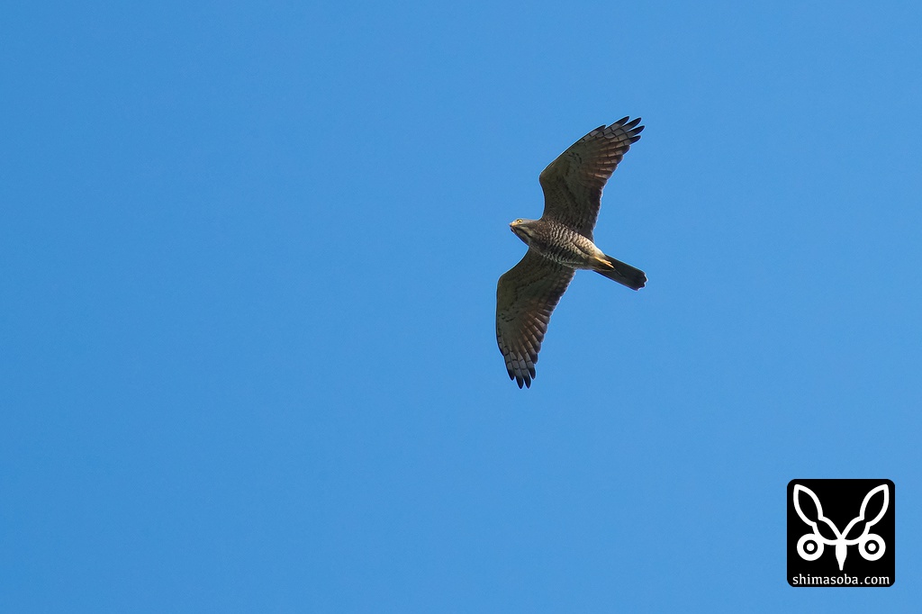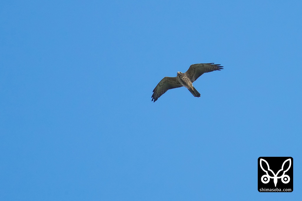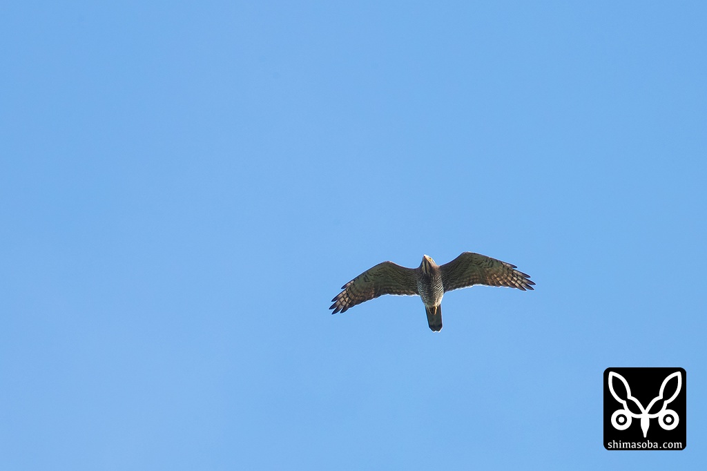 サシバの成鳥が真上を通り過ぎますがかなりの高度があります。