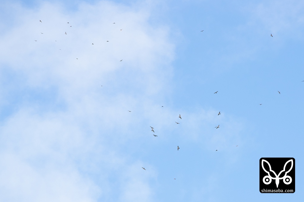 画角に入りきらない群れ。60羽ほどのタカ柱でした。