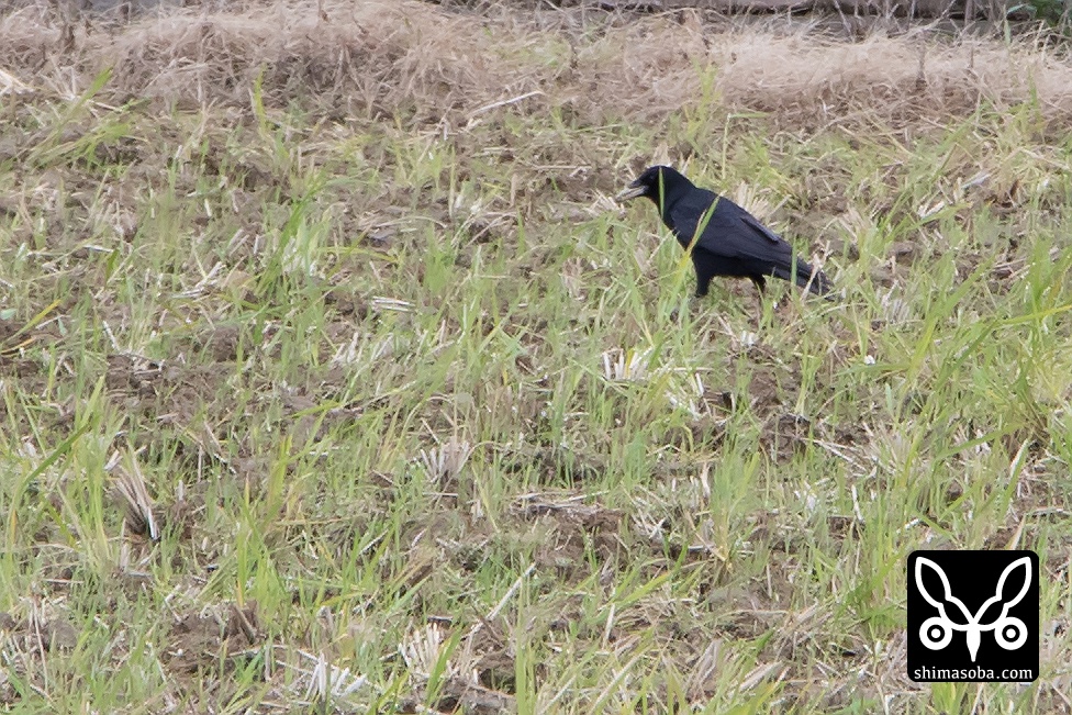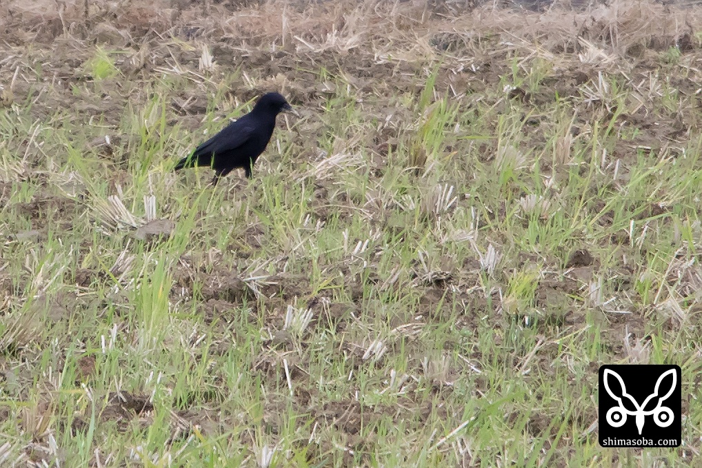 仕事が思いの外早く片付いたので田んぼに寄ってみると見慣れないカラス。ハシボソガラスかと思い、双眼鏡で覗くとミヤマガラスでした。ハシボソガラスの方が嬉しかったけど、沖縄本島でミヤマガラスは初めて。群れで遭遇することが多いミヤマガラスでしたが、今回は単独でした。