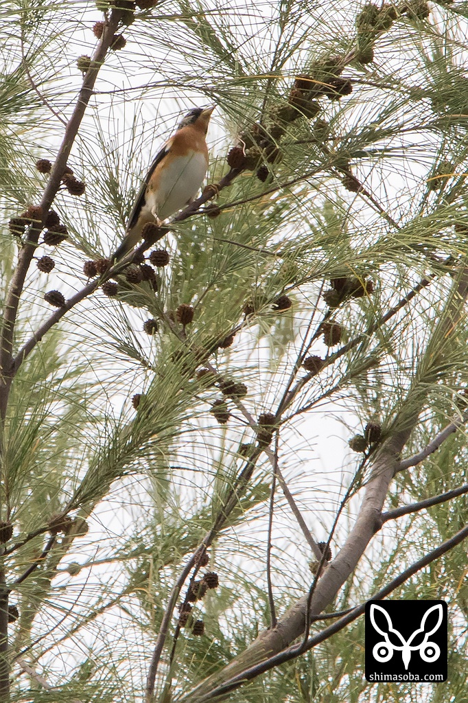 30羽ほどのアトリがモクマオウの実を食っていた。