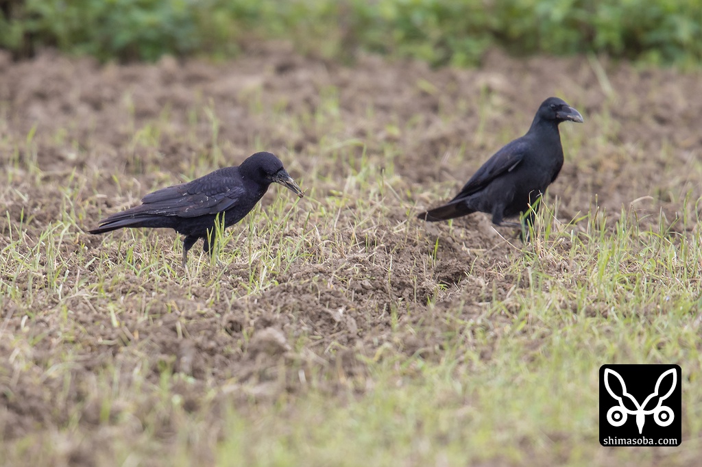 右はリュウキュウハシブトガラス、左はミヤマガラス。くちばしの形だけでも随分違う。
