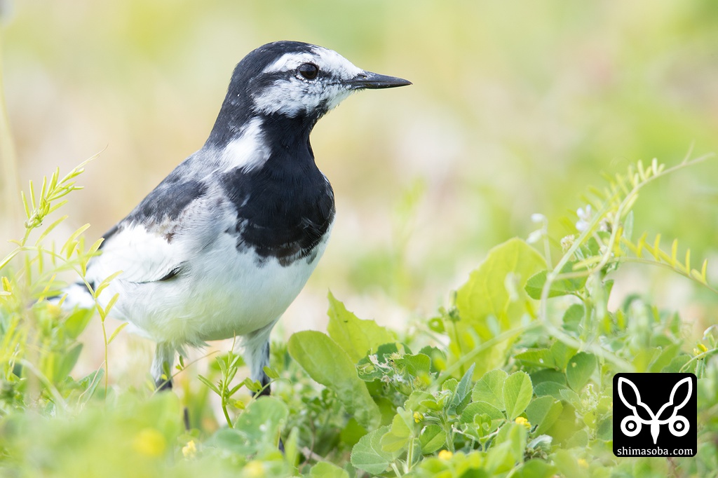 ハクセキレイは、20羽ほどの群れが芝生で餌をとっていた。
