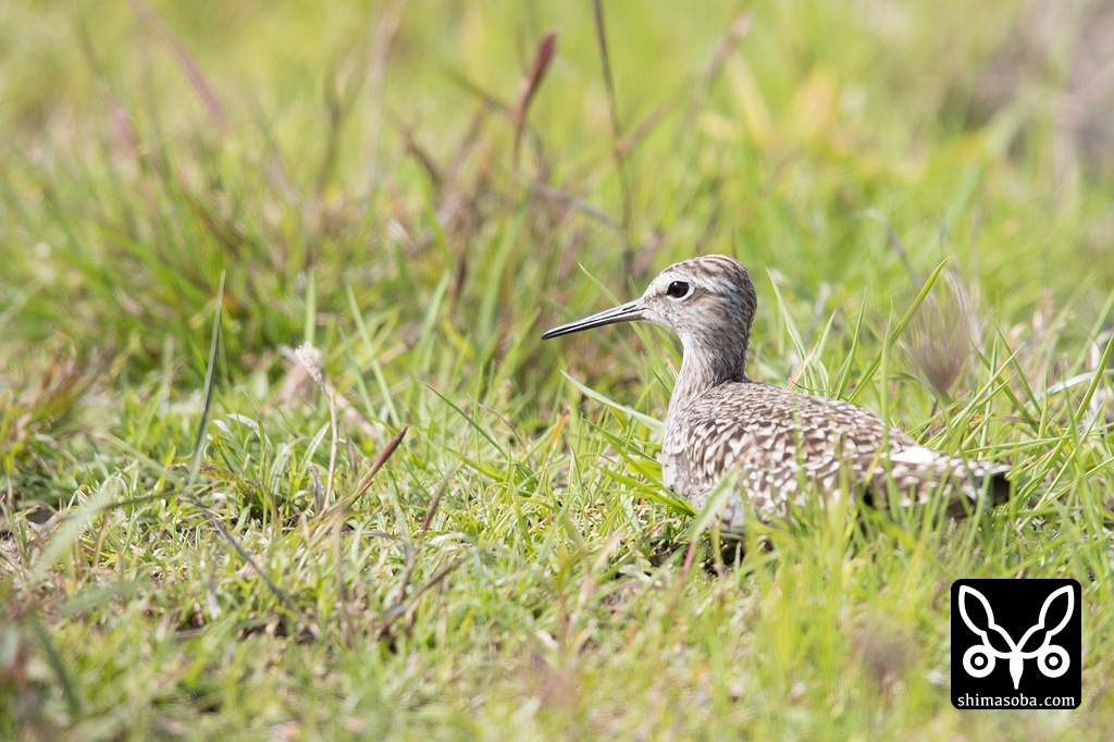 アカハラと同じ芝生には、シマアカモズもいた。こちらも沖縄本島では珍しい鳥。