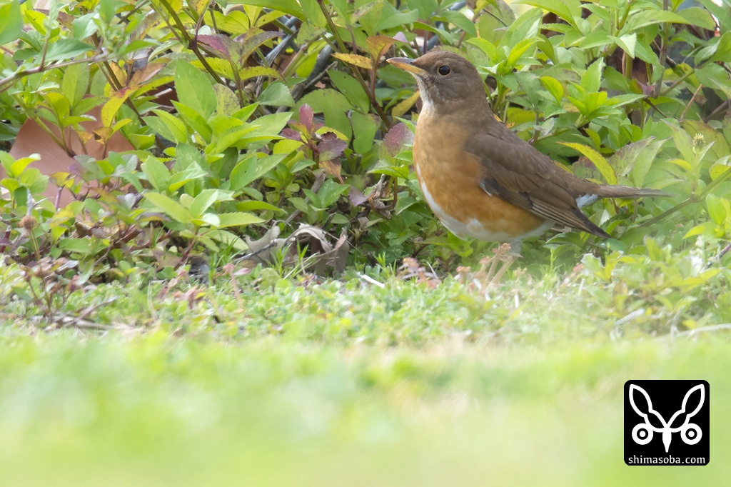 探し求めていたアカハラは、道路沿いのなんでもない芝生にいました。^^;