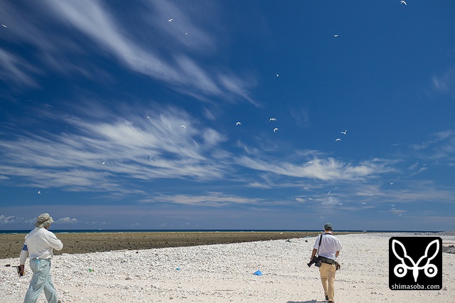 ナガンヌ島などで営巣もしているようで二十数羽の群れの飛翔も見ることができました。想像していたよりかなり大きくオオアジサシほどありました。また、頭から背中にかけての黒とそれ以外の白の部分が美しいコントラストで大変迫力のあるアジサシでした。