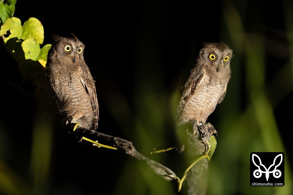 親鳥が餌を運んでくるのを待っています。夜はカラスもいないので安心してこのような見晴らしの良い場所に出てきます。アオバズクがすぐ近くの電線にいるのですが、お互い干渉しないようでう。