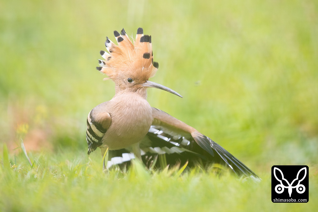 芝生の上でポーズを決めてくれたヤツガシラ。