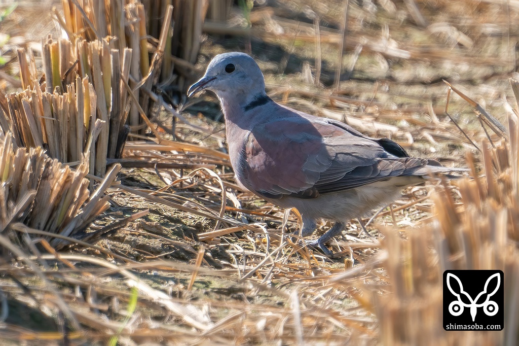 ベニバトのオス第1回冬羽へ換羽中。