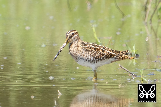 タシギ幼鳥。きょうの出会いは2個体だけでした。
