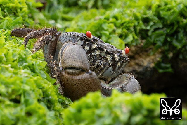 海岸には大きなクマドリオオギガニがたくさんいました。