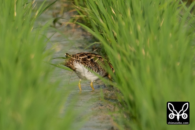 背が高くなってきた水稲の間を歩きながら餌を探していました。